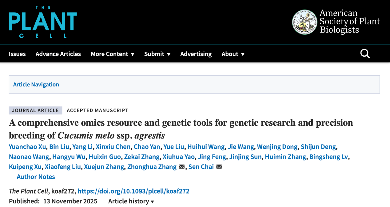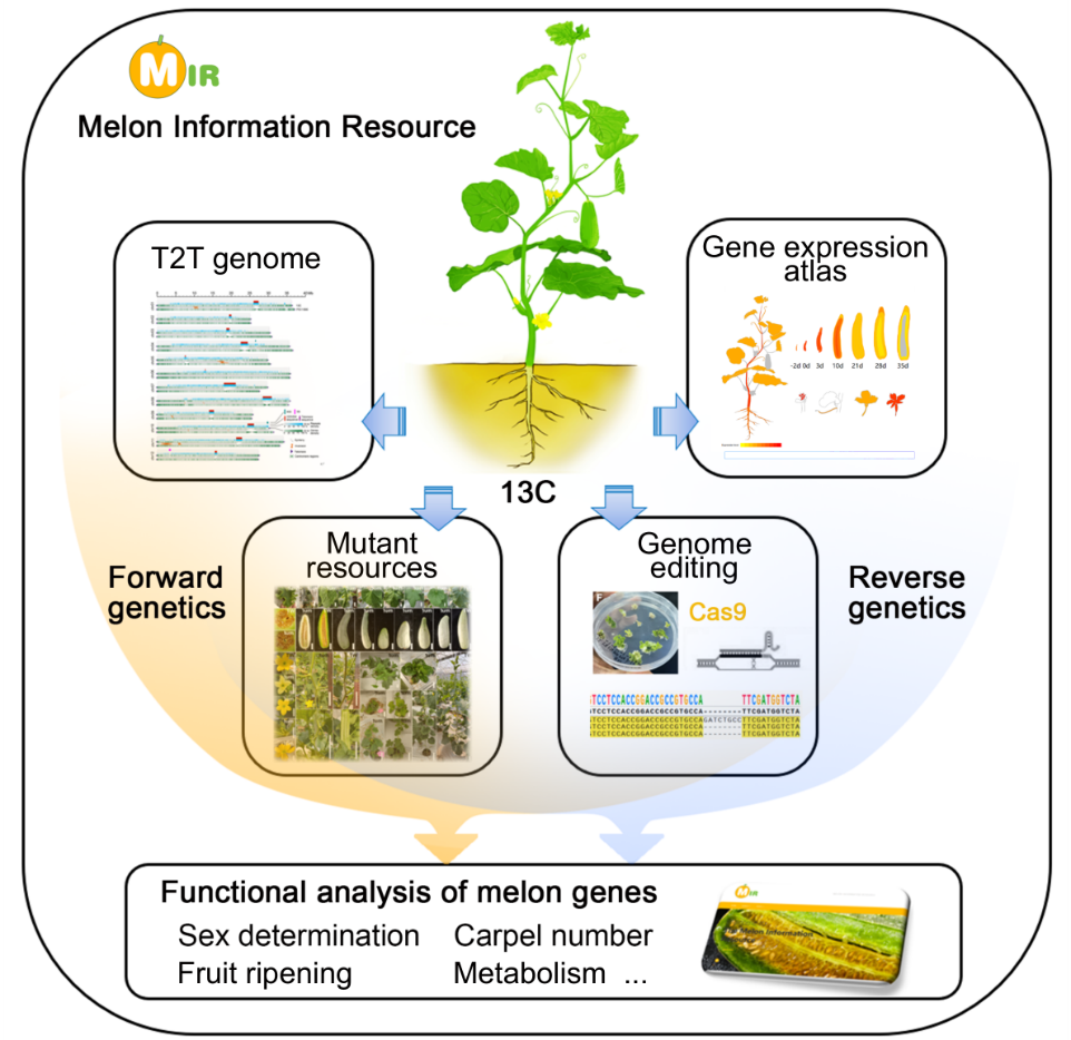 近日,安博网页版园艺学院瓜类生物学张忠华/柴森团队与合作团队在国际知名期刊The Plant Cell(自然指数期刊)在线发表题为《A comprehensive omics resource and genetic tools for genetic research and precision breeding of Cucumis melo ssp. agrestis》的研究论文,该研究基于薄皮栽培种质13C, 构建了包含T2T基因组、全组织的转录组图谱、重测序近饱和EMS突变体库以及稳定遗传转化技术等工具的甜瓜综合功能基因研究体系,并挖掘多个农艺性状的关键功能基因,为甜瓜功能基因研究与分子育种提供了理论和技术支持。