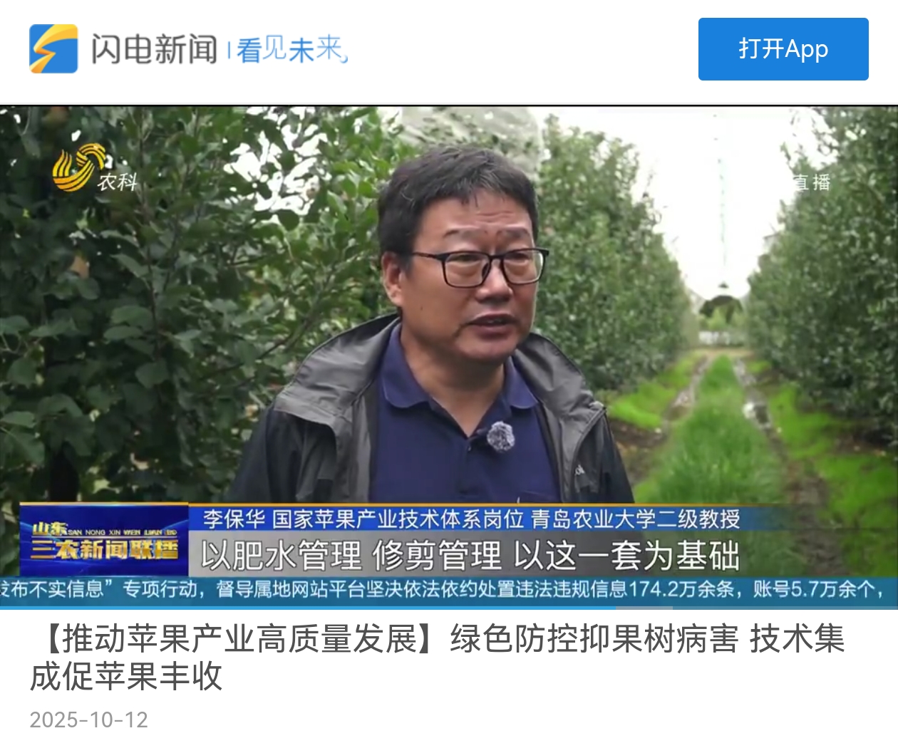 【编者按】10月12日,山东三农新闻联播以《【推动苹果产业高质量发展】绿色防控抑果树病害 技术集成促苹果丰收》为题报道安博网页版以生态为主监测预测相结合的精准用药促苹果丰收。