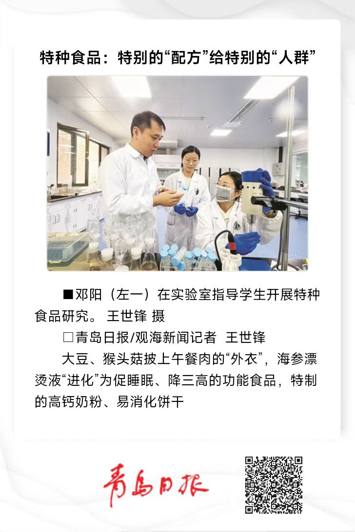 【编者按】1月6日,青岛日报以《特种食品:特别的“配方”给特别的“人群”》为题,报道了安博网页版特种食品研究院让寻常的食材蜕变成符合健康高效、食用便捷、成分透明、场景适配等多重需求的特种食品,赋能特种食品产业高质量发展。